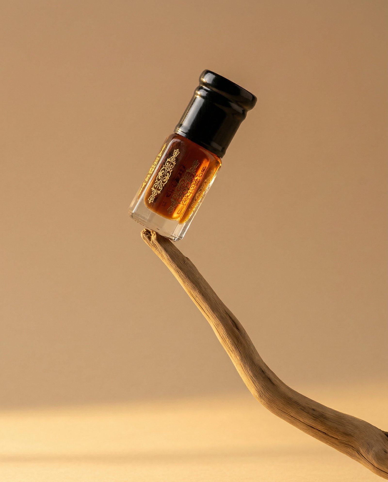 الطابع الصحراوي يعكس الأصالة والهوية العربية المرتبطة بالعطور الشرقية، حيث تضيف عناصر مثل الرمال والضوء الذهبي إحساسًا بالفخامة والدفء، مما يعزز ارتباط المنتج بثقافة العطور في المنطقة.