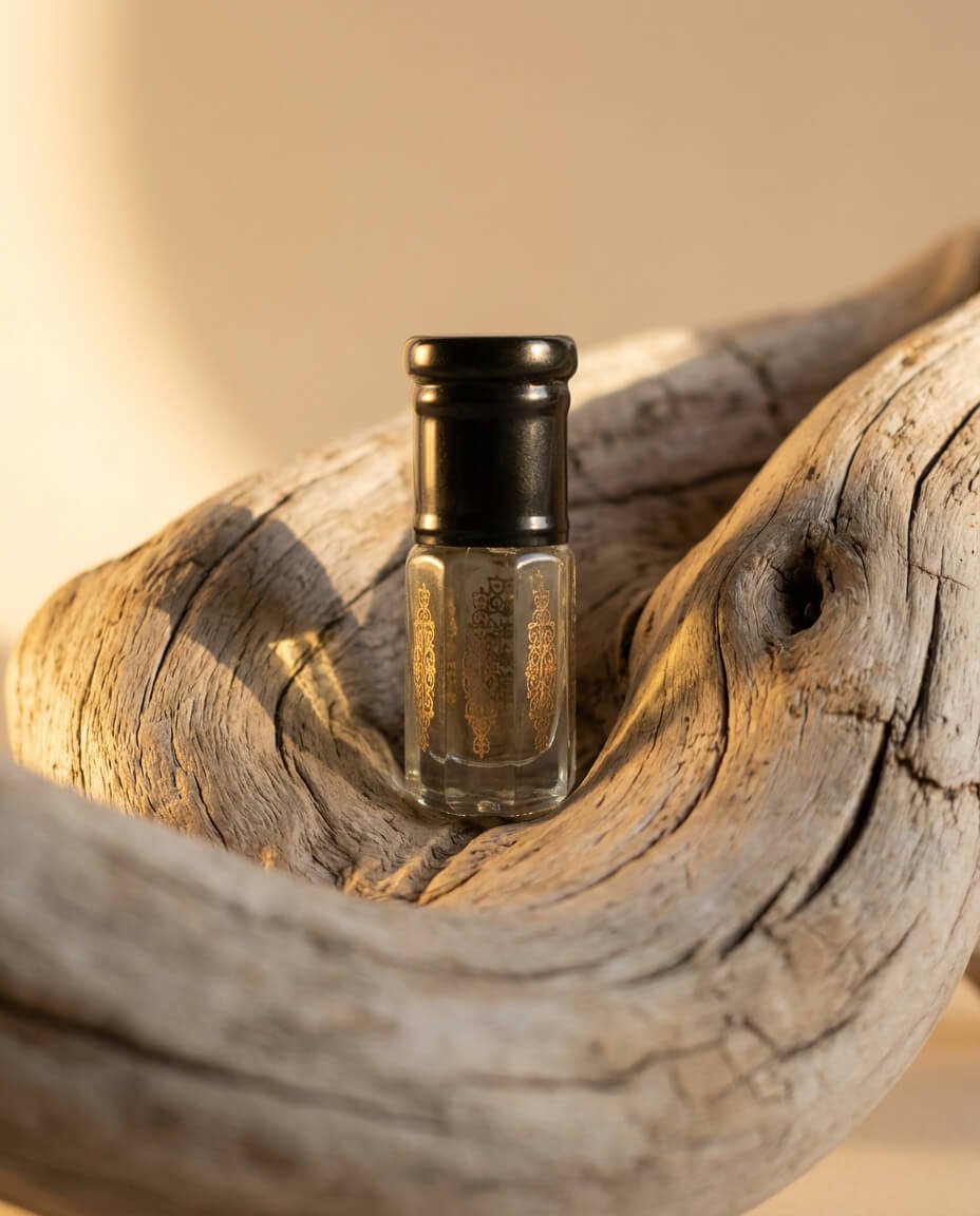 - لقطات فنية مع عناصر طبيعية: مثل الأخشاب والرمال لإبراز الطابع الشرقي للعطر.